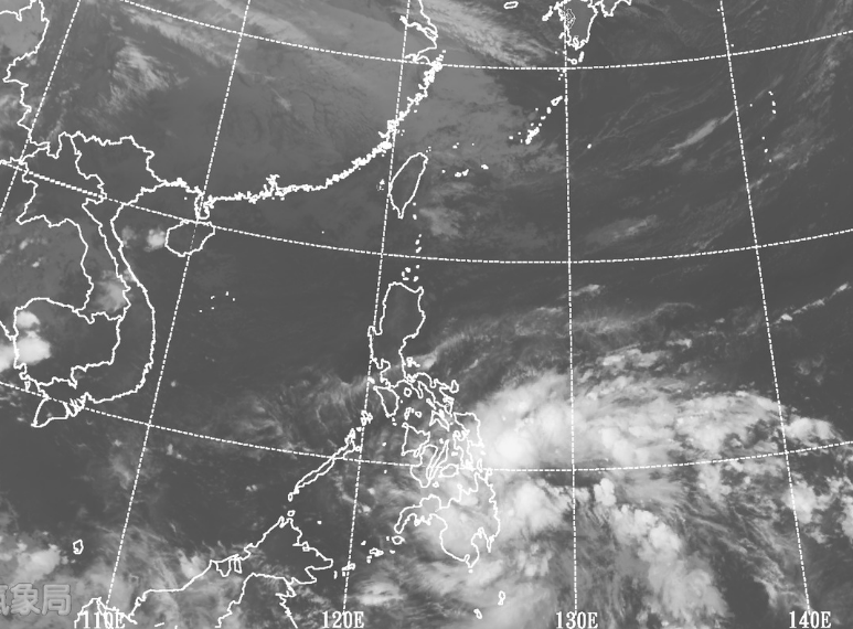 圖:今(16日)晨4時紅外線衛星雲圖顯示,熱帶擾動在菲律賓東方海面,位置偏南(大約在北緯6度、東經129度),結構鬆散仍在發展中。 |